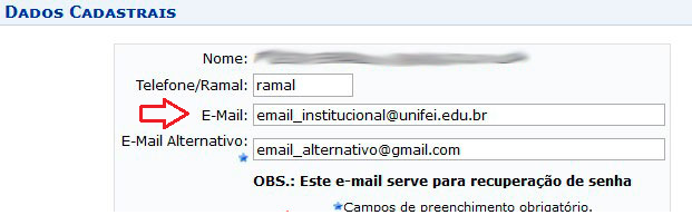 No campo "E-mail alternativo", este serve apenas para recuperar a senha institucional.