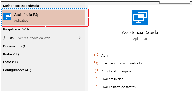 Caso o aplicativo não apareça, você precisará acessar o Microsoft Store, procurar a Assistência Rápida e colocar para instalar o mesmo na máquina.